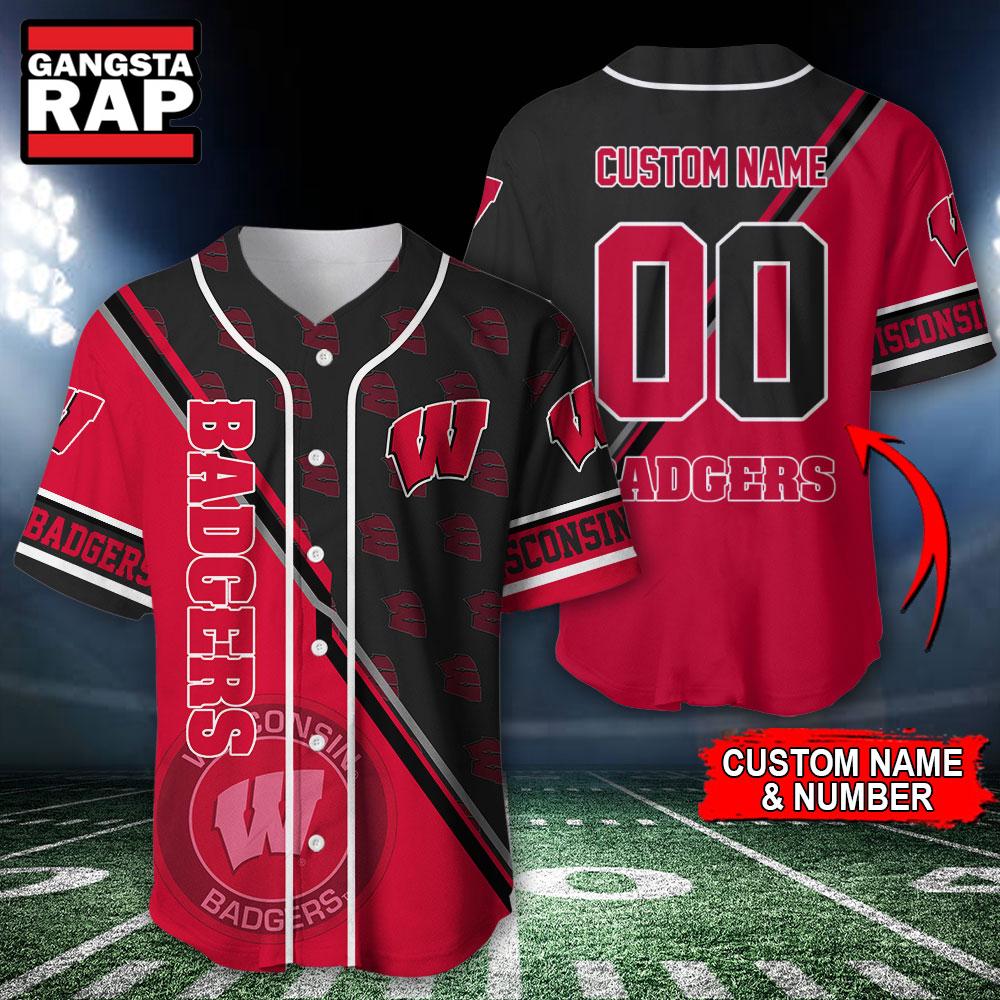 NCAA Wisconsin Badgers Logo Team Sport Design Baseball Jersey