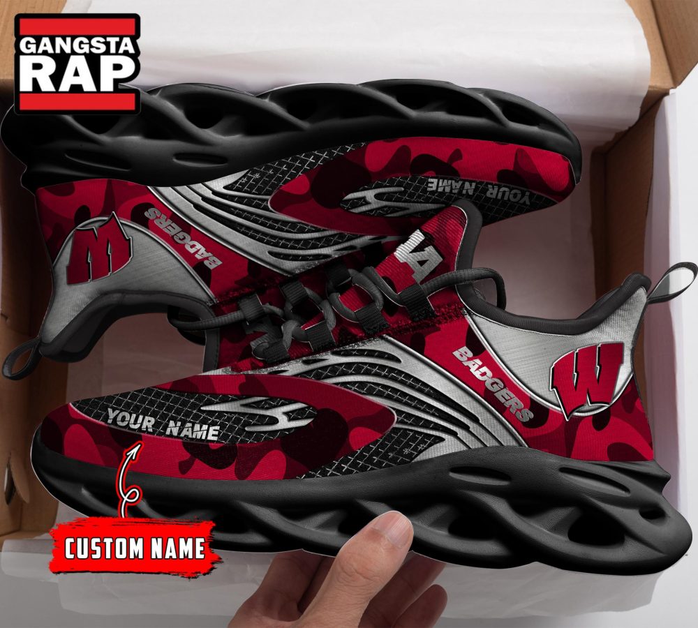 NCAA Wisconsin Badgers Sport Logo Team Custom Name Max Soul Shoes