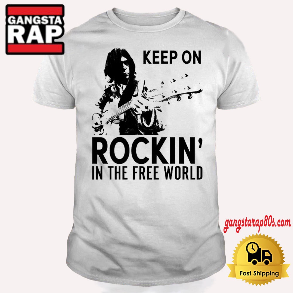 Product details: Neil Young Keep On Rockin In The Free World T Shirt, Neil Young Tour T Shirt