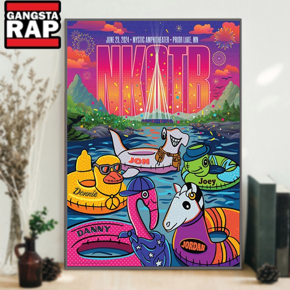 Discover the vibrant energy of live music with the New Kids On The Block Mystic Amphitheater Prior Lake MN Poster Canvas Art. This stunning piece is an essential collectible for fans of the pop sensation, New Kids On The Block, who have been entertaining audiences since their formation in 1984. The poster features a visually captivating design that captures the essence of the band’s long-anticipated return to the stage, set against the backdrop of the iconic Mystic Amphitheater located in the picturesque Prior Lake, Minnesota.