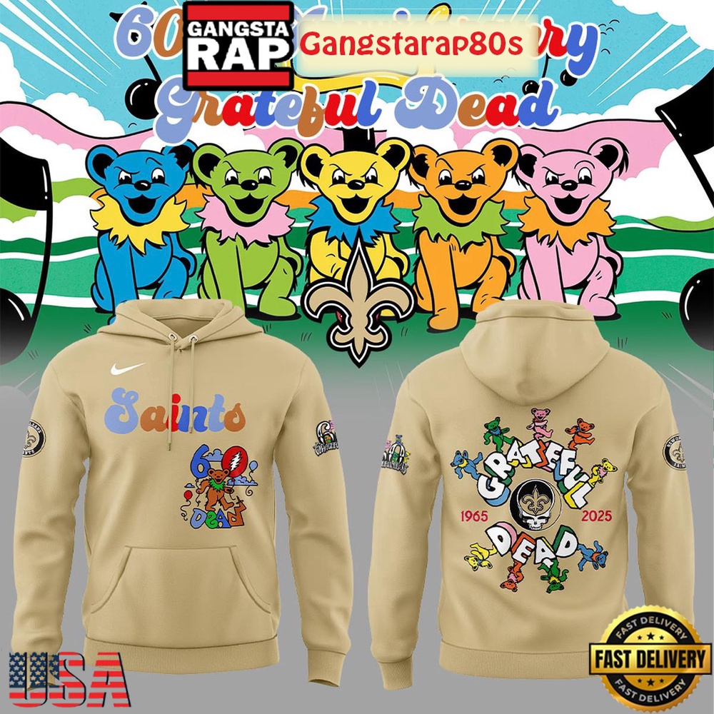 Don’t miss out on this stylish, commemorative hoodie that stands out with its distinctive design and commemorates the historic synergy between two beloved American icons. Perfect for gifting or indulging yourself, the New Orleans Saints 60th Anniversary Birthday Grateful Dead Limited Unisex Hoodie ensures you carry both teams’ legacies in every stitch.