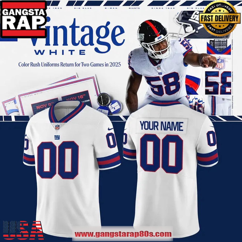 Introducing the New York Giants Vintage White Nike 2025 Custom Football Jersey, a timeless piece for passionate football fans and collectors alike. This exclusive jersey honors the prestigious legacy of the New York Giants, rendered in a classic vintage white that recalls the legendary moments of the team’s illustrious past. Created by Nike, this jersey combines cutting-edge performance technology with a retro-inspired design, ensuring both style and comfort.