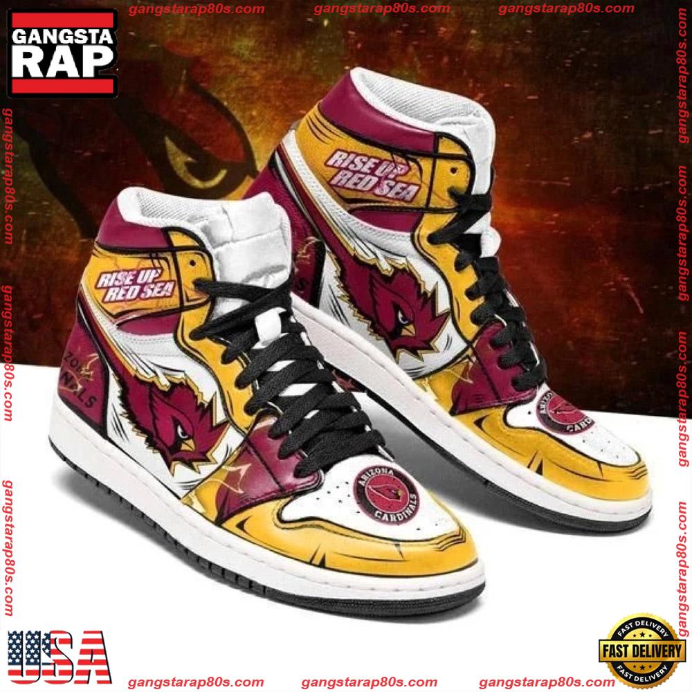 The NFL Arizona Cardinals Football Logo Team Air Jordan 1 Running Sneakers Shoes are the epitome of team spirit and athletic style. These exclusive sneakers are designed for dedicated Arizona Cardinals fans who wish to carry the team’s pride with them, both on and off the field. Seamlessly merging the iconic Air Jordan 1 design with the distinctive Arizona Cardinals logo, these shoes provide an eye-catching look that resonates with both basketball enthusiasts and football fanatics.