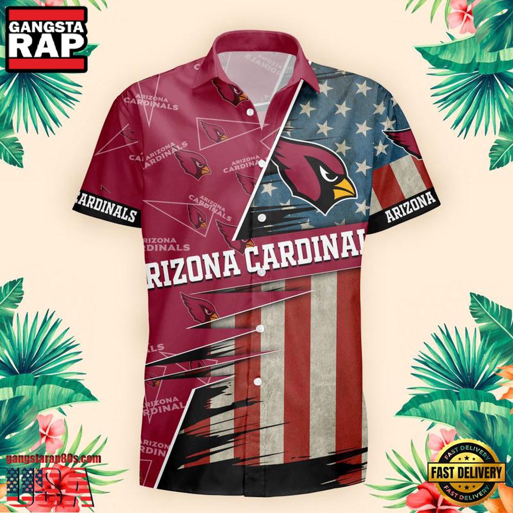 Show off your team spirit with the eye-catching NFL Arizona Cardinals US Flag Pattern Hawaiian Shirt for 2023. This shirt is a must-have for ardent fans who want to blend their love for football with a touch of tropical style. Designed with a unique US Flag pattern, it celebrates the perfect fusion of patriotism and fandom, making it a standout choice at any game day or casual outdoor event.