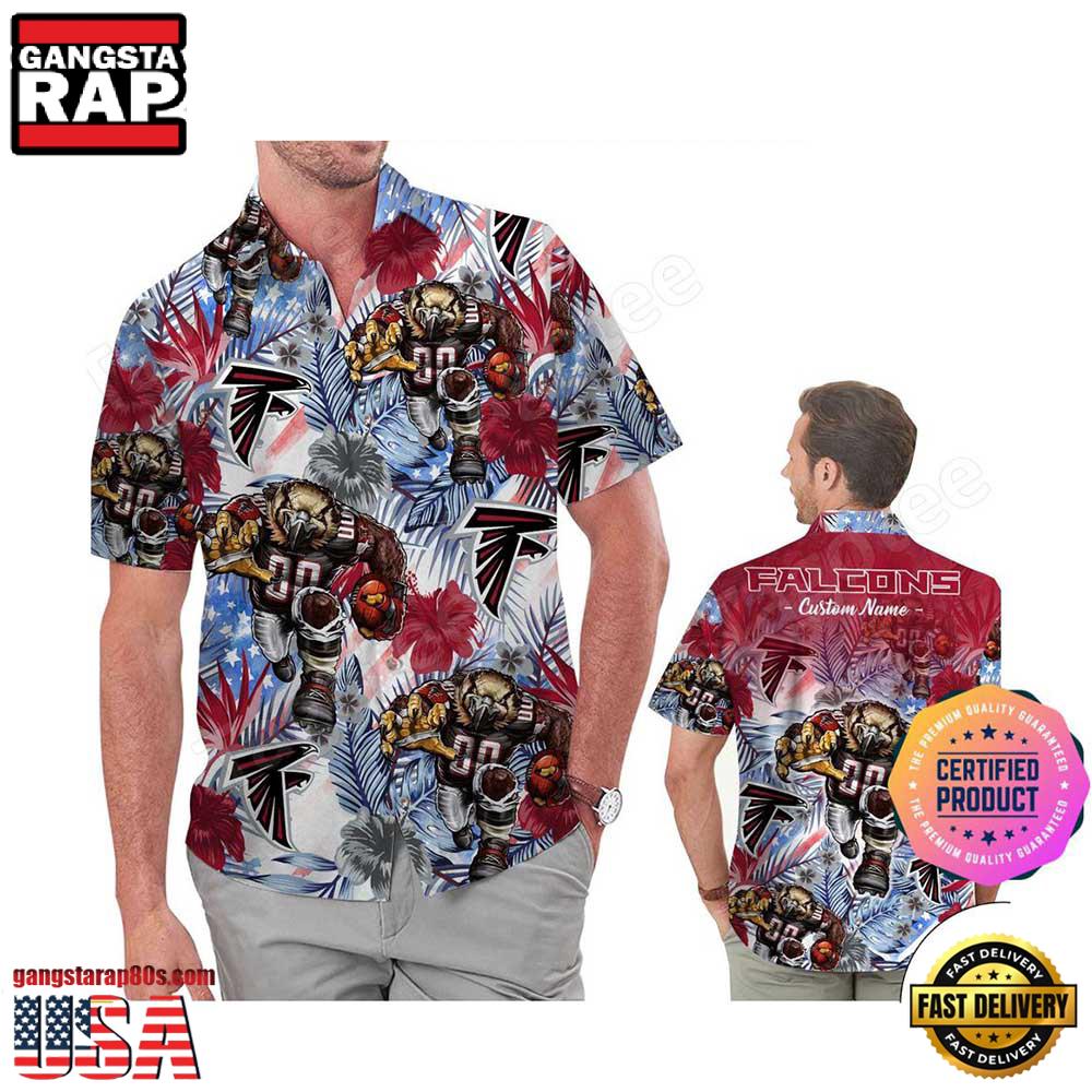 NFL Atlanta Falcons America Flag Tropical Floral Custom Hawaiian Shirt for Men and Women