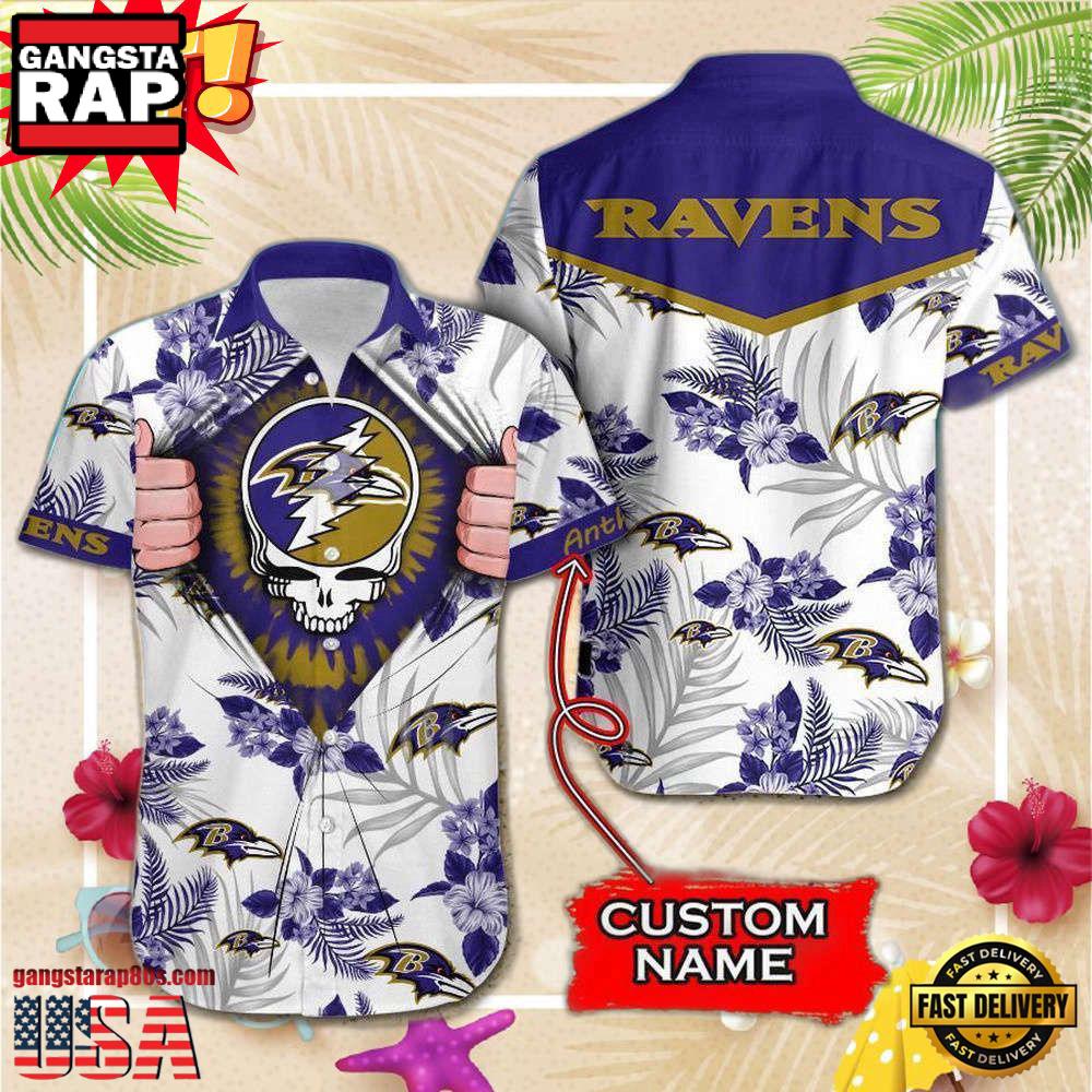 Photos Of NFL Baltimore Ravens Grateful Dead Personalized Unisex Hawaiian Shirt