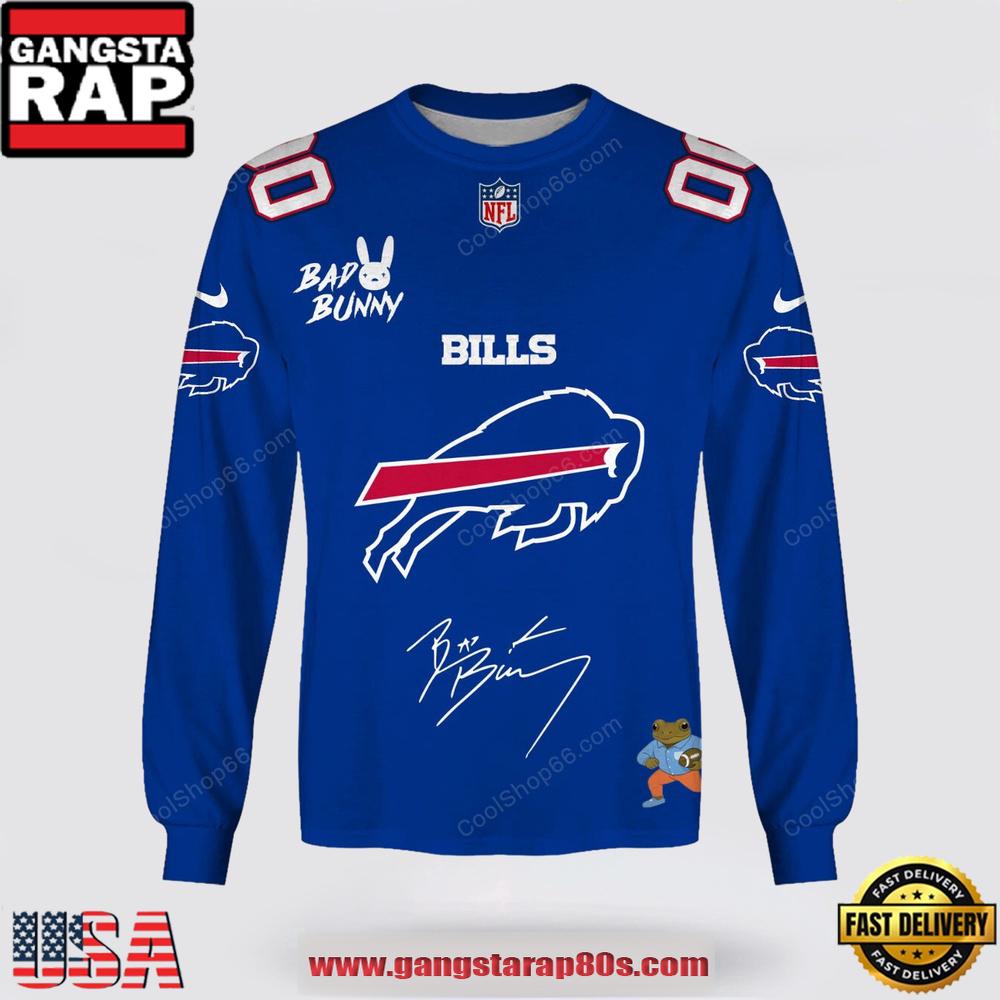 Don’t miss out on owning this piece of history. Embrace the ultimate blend of sport and music with the NFL Buffalo Bills x Bad Bunny Super Bowl 2026 Special Edition Custom Sweatshirt, a garment that epitomizes passion, artistry, and fandom.