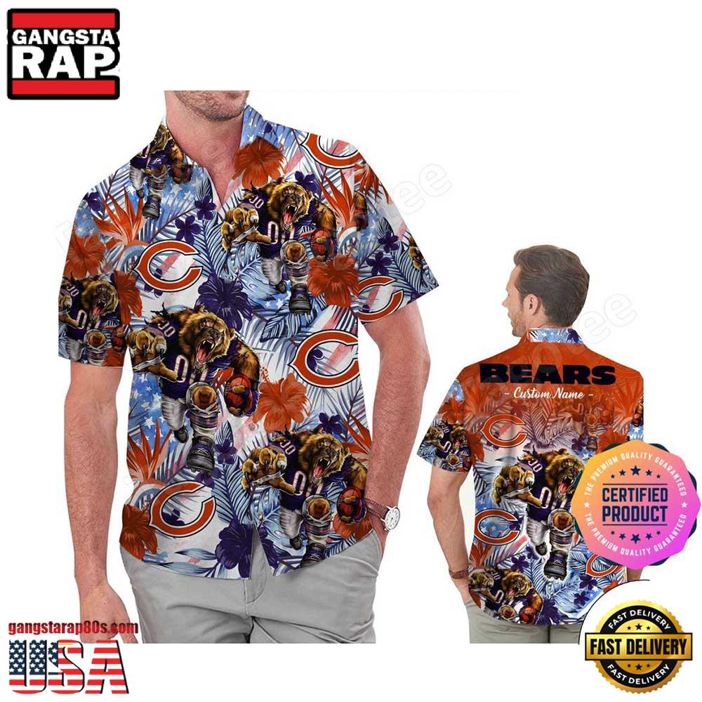 NFL Chicago Bears America Flag Tropical Floral Custom Hawaiian Shirt for Men Women