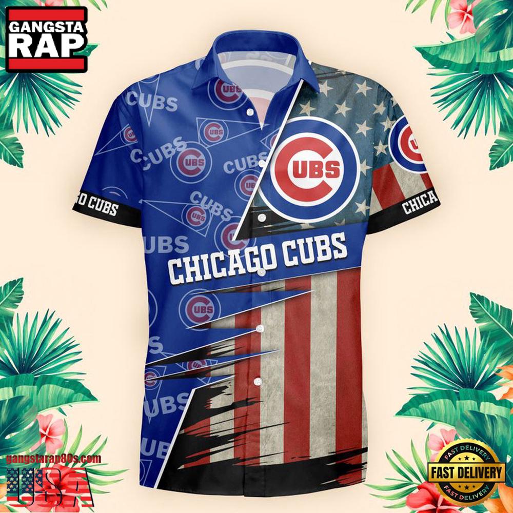 Photos Of NFL Chicago Cubs US Flag Pattern Hawaiian Shirt