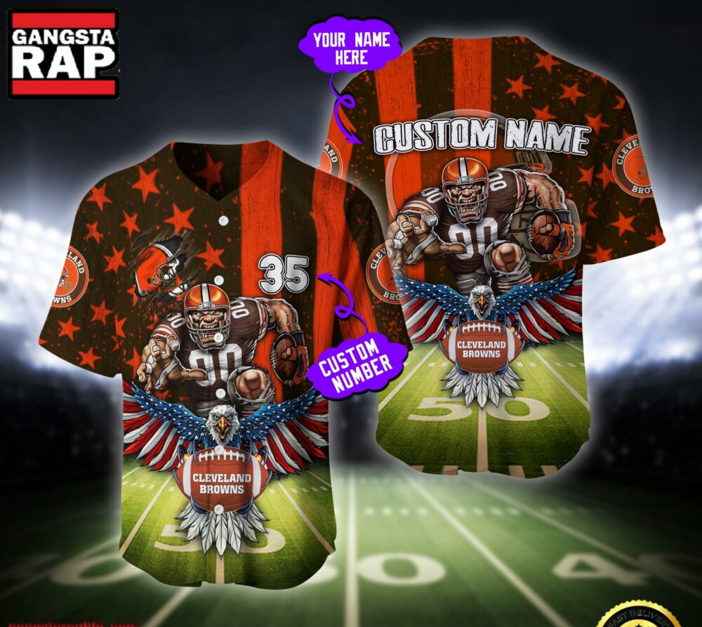 NFL Cleveland Browns Eagle US Flag x Veterans Custom Name Number Baseball Jersey Shirt