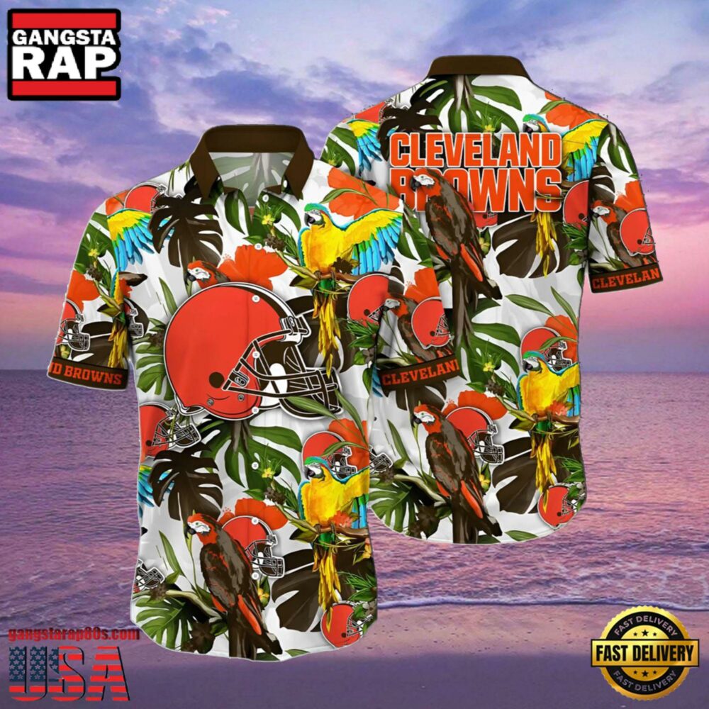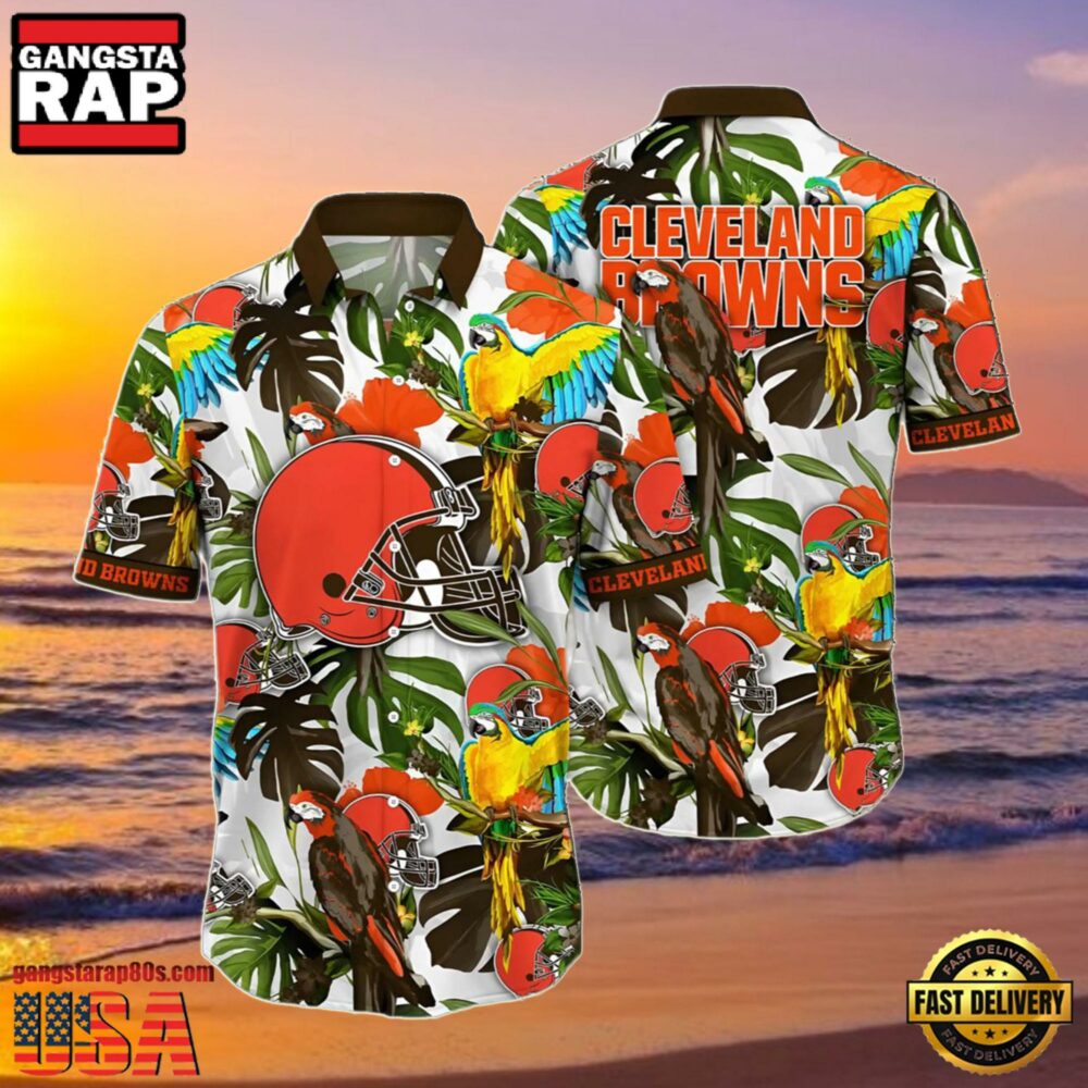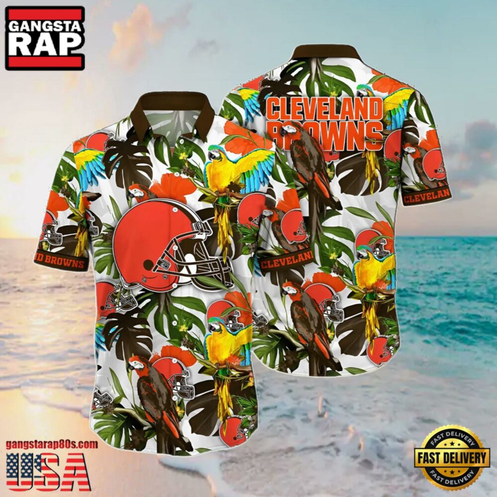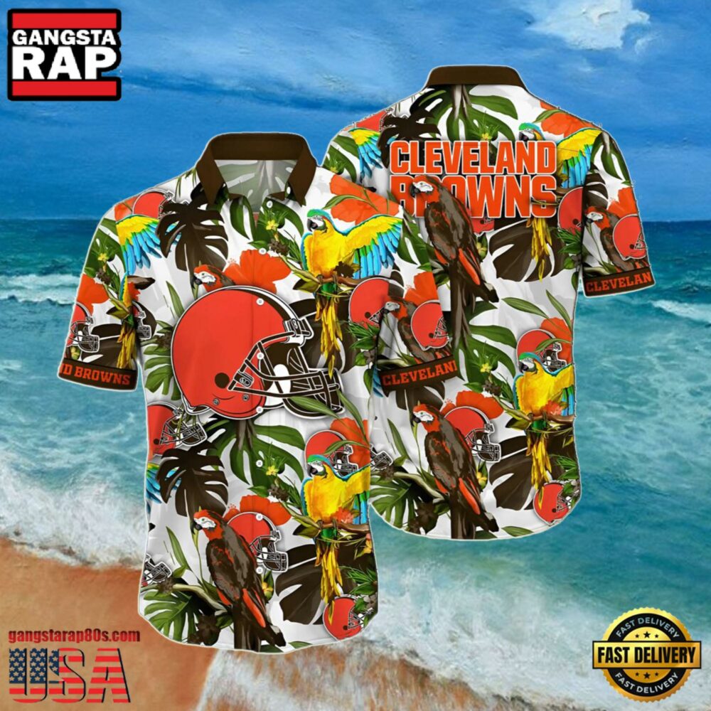 NFL Cleveland Browns Summer Hawaiian Shirt – Tropical Bird and Leaf Pattern