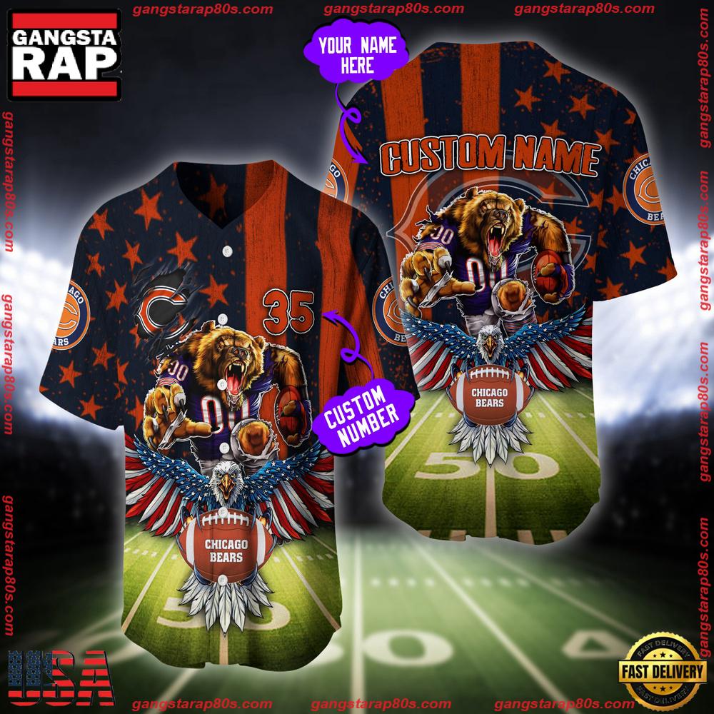 NFL Custom Name And Number Chicago Bears Mascot US Flag Baseball Jersey Shirt