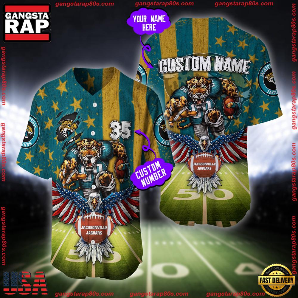 Explore the Unique NFL Custom Name and Number Jacksonville Jaguars Mascot US Flag Baseball Jersey Shirt