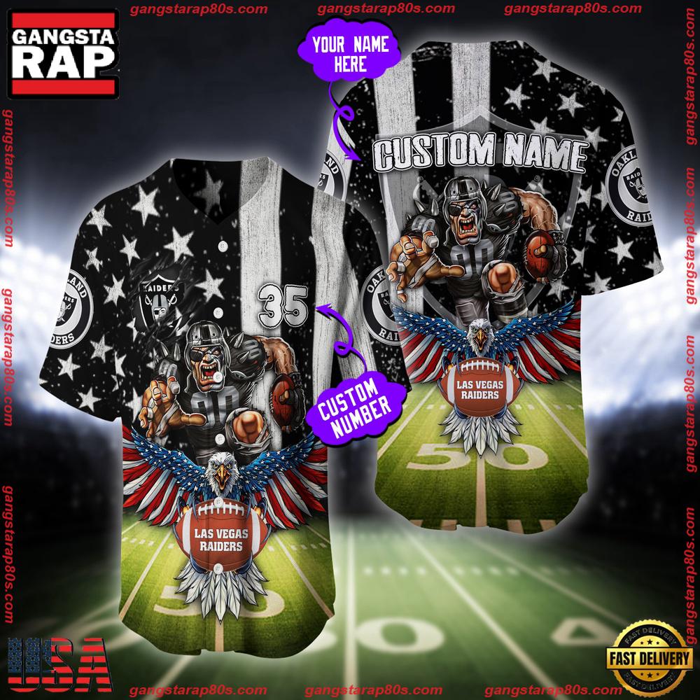 NFL Custom Name And Number Las Vegas Raiders Mascot US Flag Baseball Jersey Shirt