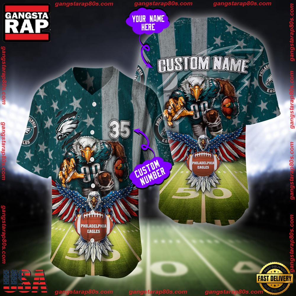 NFL Custom Name And Number Philadelphia Eagles Mascot US Flag Baseball Jersey Shirt