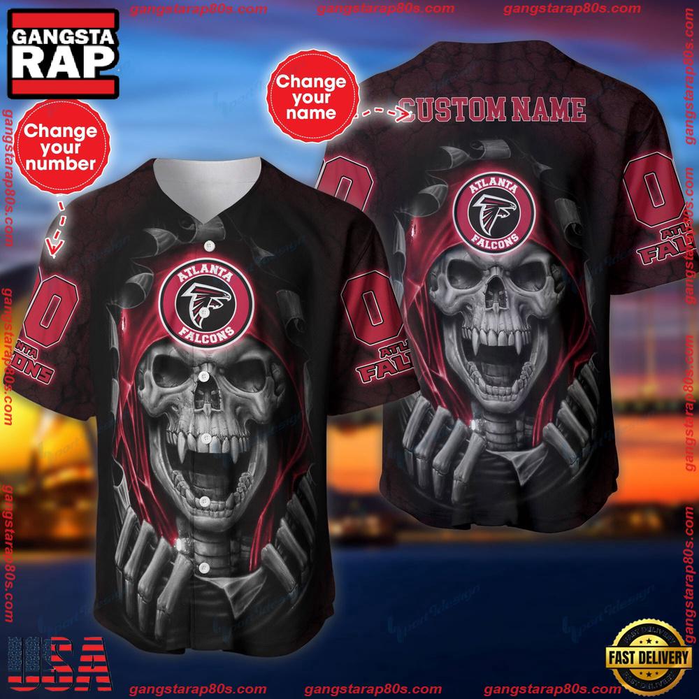 NFL Custom Name And Number Team Atlanta Falcons Skull Pattern Baseball Jersey Shirt