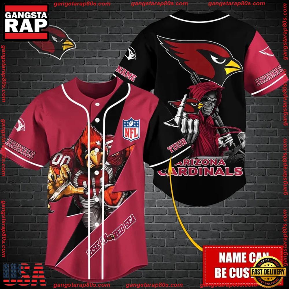 NFL Custom Name Arizona Cardinals Mascot And Skull New Design Baseball Jersey