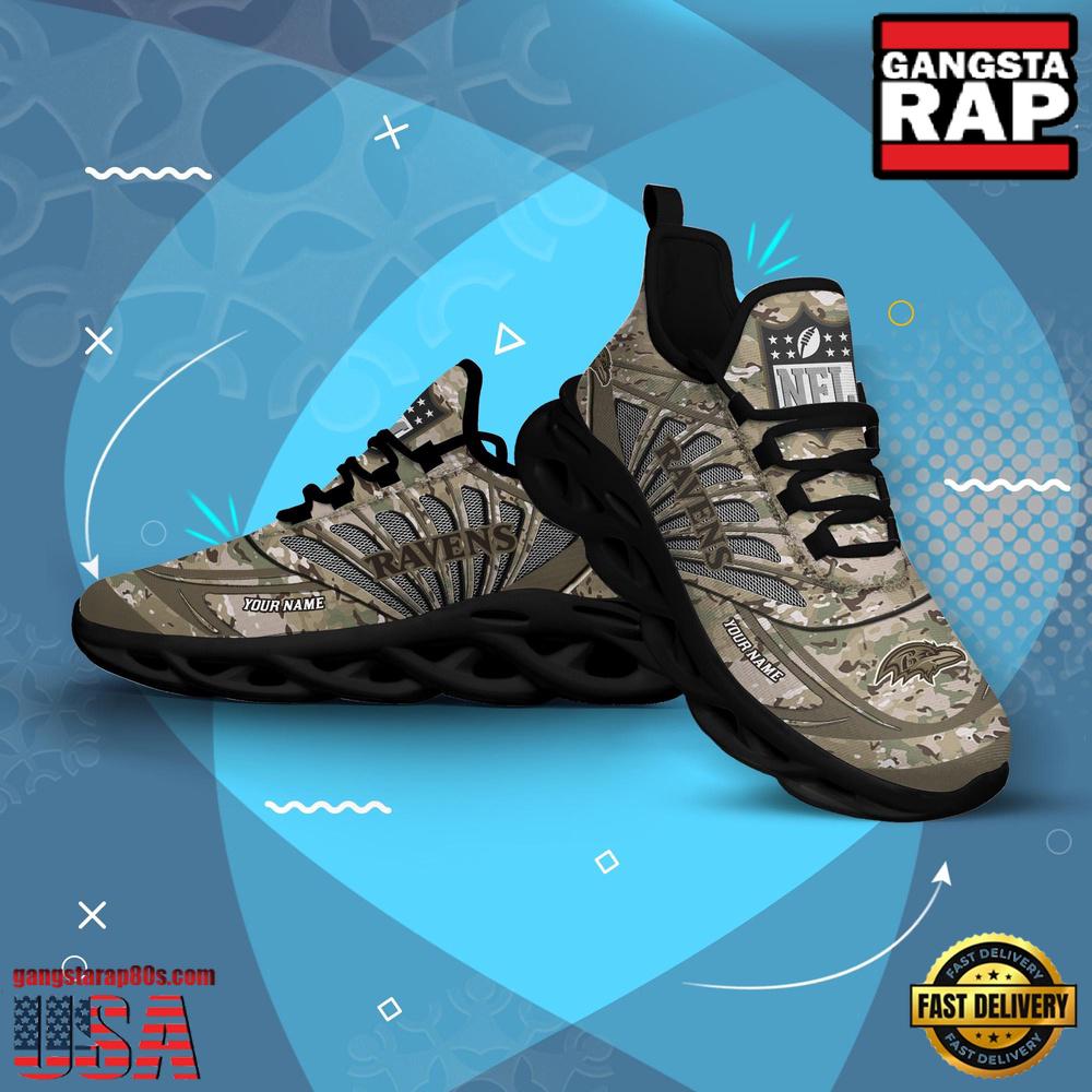 NFL Custom Name Baltimore Ravens Camo Veteran Day Max Soul Shoes