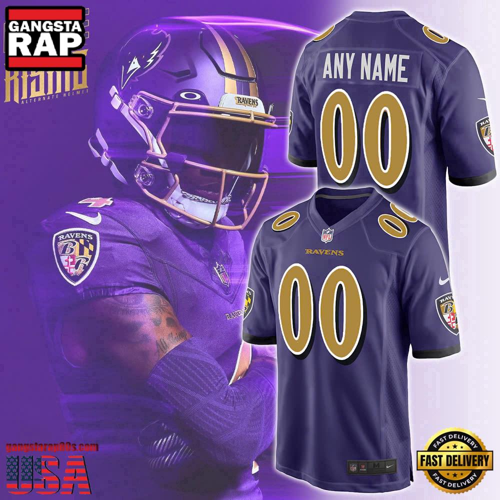 This customizable football jersey allows you to personalize your look with your name and favorite player’s number, ensuring you’re part of the action as you cheer on the Ravens. The bold, deep purple color signifies strength and determination, echoing the team’s reputation for resilience and ultimate performance on the field.