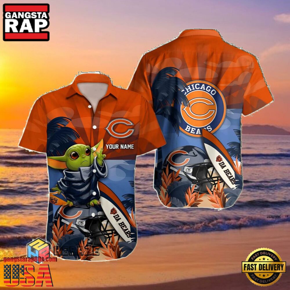 NFL Custom Name Chicago Bears And Baby Yoda Summer Hawaiian Shirt