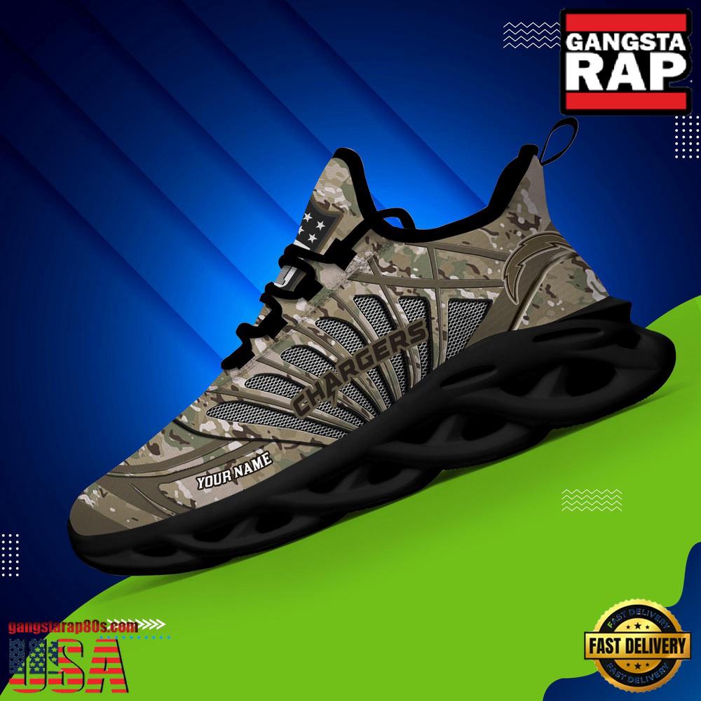 Photos Of NFL Custom Name Los Angeles Chargers Camo Veteran Day Max Soul Shoes Running Sneakers