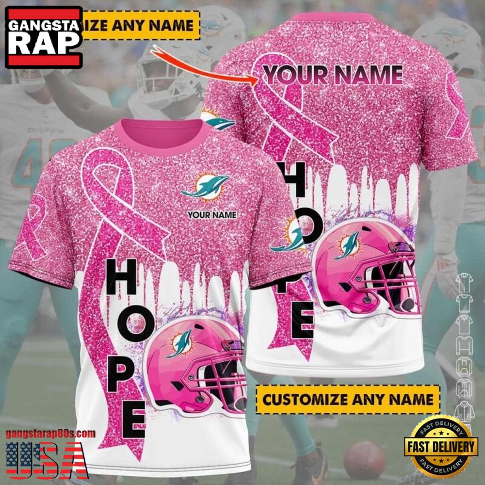 Introducing the Custom Name Miami Dolphins Breast Cancer All Over Print T-Shirt