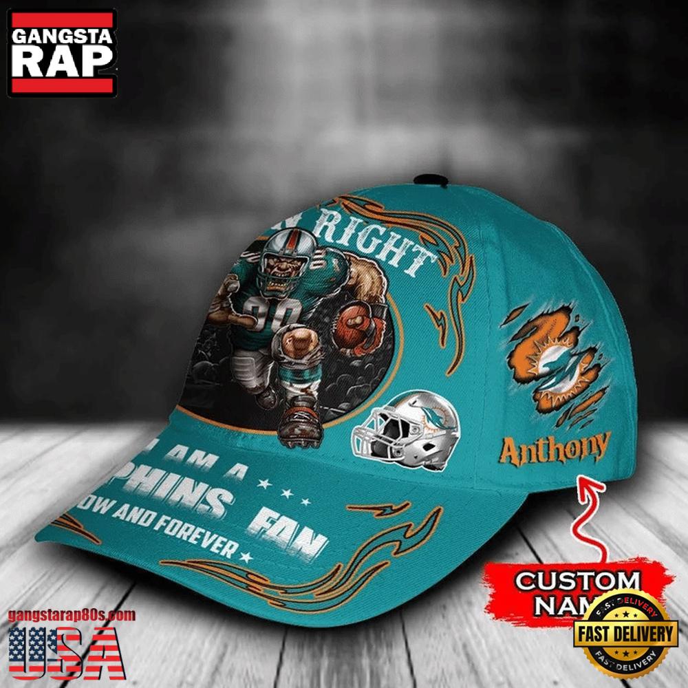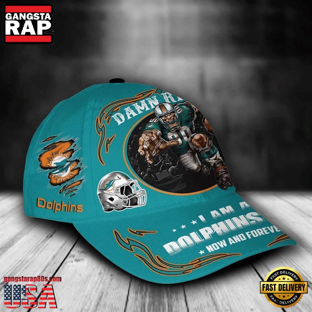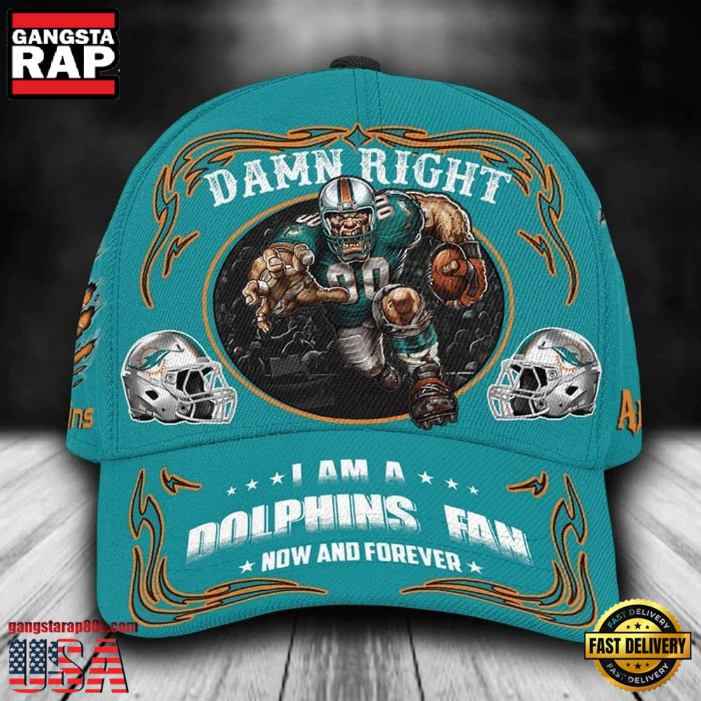 NFL Custom Name Miami Dolphins Mascot Damn Right Football Team Baseball Cap