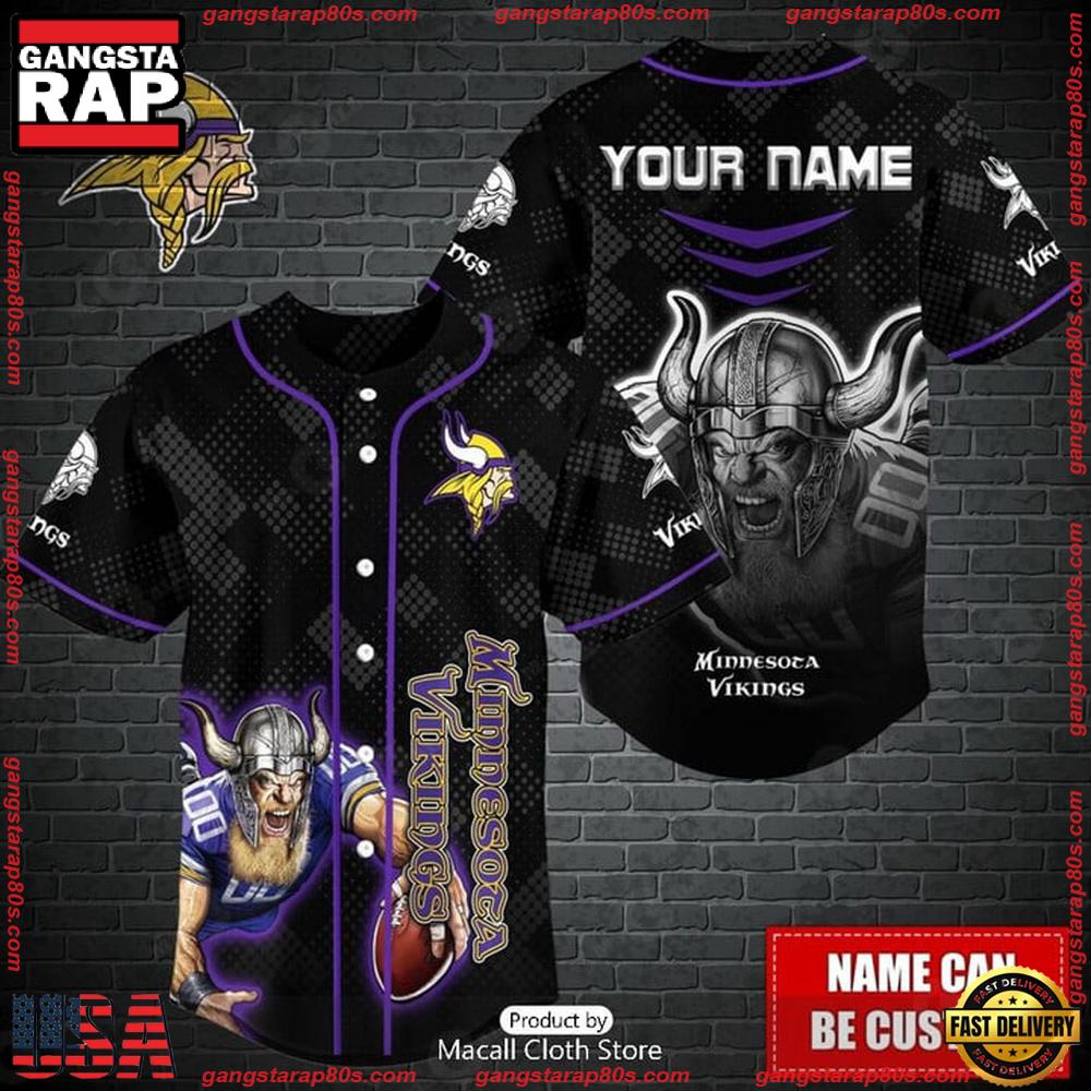 Elevate your fan experience with the customizable NFL Minnesota Vikings Mascot Baseball Jersey. This unique piece merges your love for the Vikings with the classic style of a baseball jersey, delivering both versatility and personalization. Designed for devoted Minnesota Vikings fans, this jersey allows you to add your own name or favorite player’s name, making it an exclusive garment in any 2023 football season wardrobe.