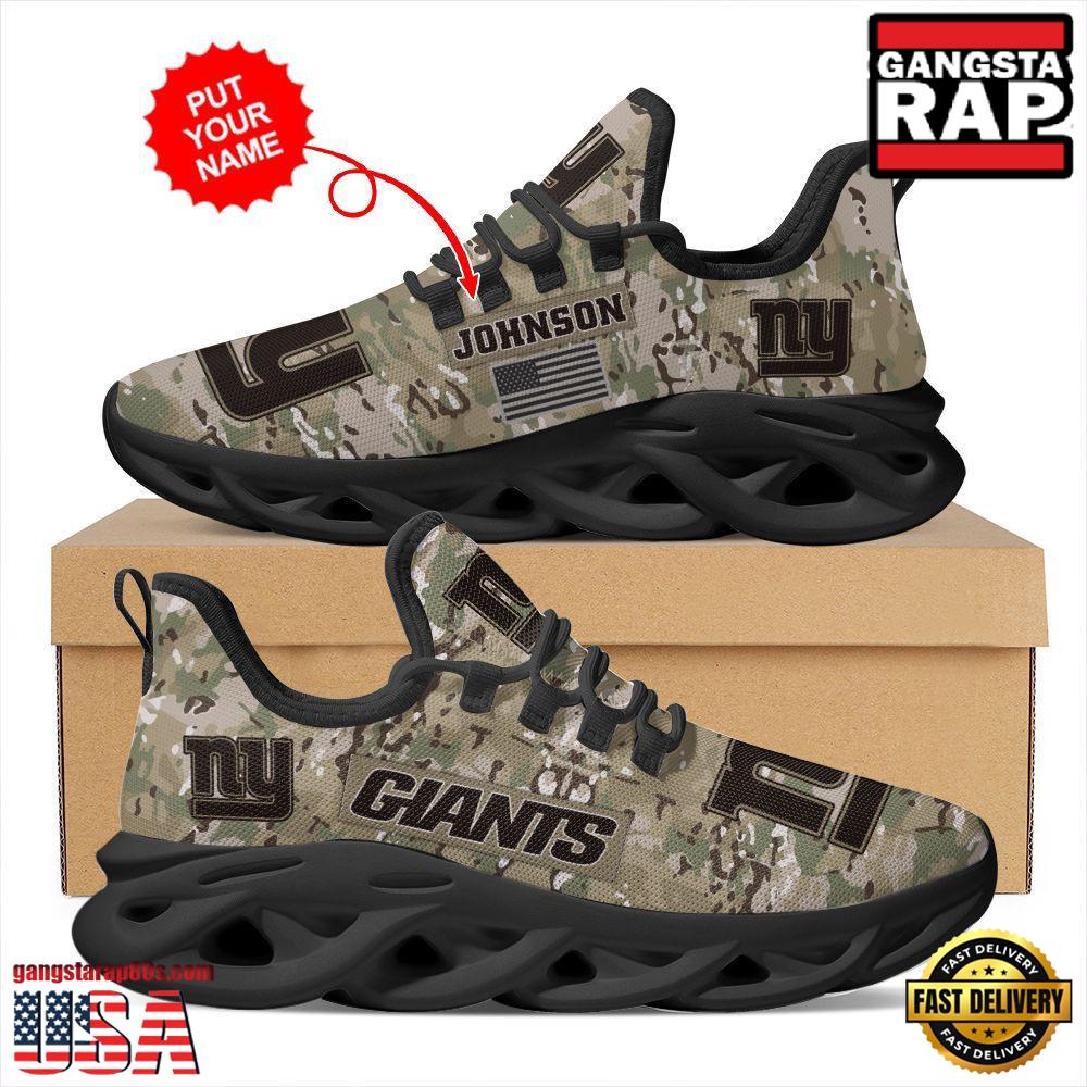 NFL Custom Name New York Giants US Army Military Veteran Camouflage Max Soul Shoes Running Sneakers