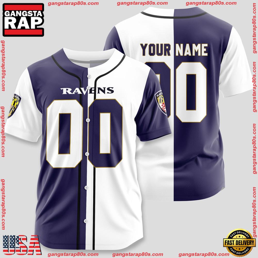 Step up your sportswear game with the NFL Custom Name Number Baltimore Ravens Design Baseball Jersey Shirt—the perfect fusion of football passion and timeless baseball jersey style. This exclusive piece caters to devoted fans of Baltimore Ravens, combining the nostalgia of sports history with contemporary trends. Its unique customization feature allows you to proudly sport your own name and favorite number, letting your Ravens pride shine unmistakably both on and off the field.