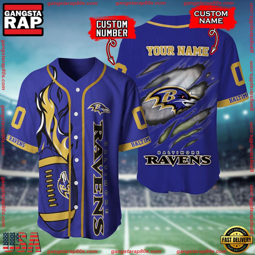 Celebrate your unwavering support for the Baltimore Ravens with this timeless NFL Custom Name Number Baseball Jersey Shirt. Perfect for die-hard fans and collectors, this jersey is a must-have item for any Ravens enthusiast in 2023. Craft your personal connection to the team with customizable options that allow you to add your own name and number, showing your team spirit like never before.