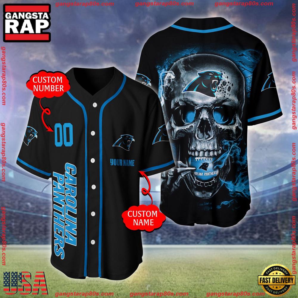 NFL Custom Name Number Carolina Panthers Skull Face Baseball Jersey Shirt: A Must-Have for True Fans