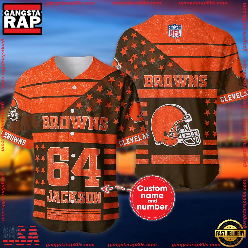 Step into the world of sports fashion with the NFL Custom Name Number Cleveland Browns American Flag New Design Baseball Jersey Shirt. This exclusive jersey shirt is perfect for those who live and breathe the Cleveland Browns spirit. With the holiday season approaching, grab this limited edition piece that blends patriotism with a love for the game.