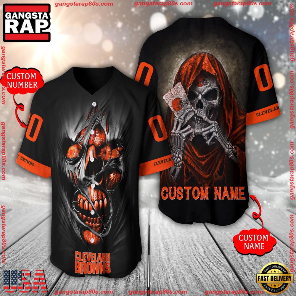 NFL Custom Name Number Cleveland Browns Team Skull Death Baseball Jersey Shirt