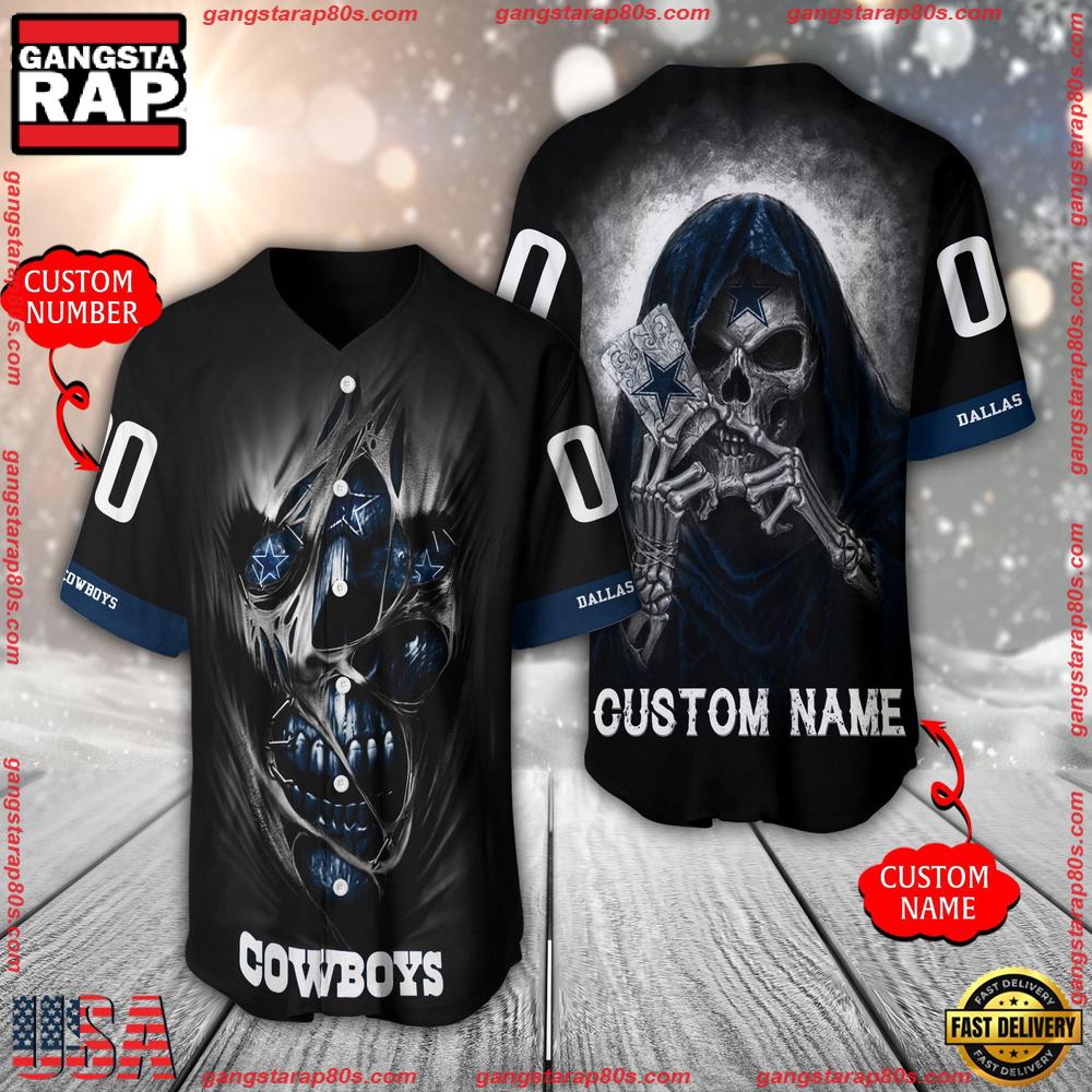 Unleash Your Inner Fan with the Custom Name Number Dallas Cowboys Team Skull Death Baseball Jersey Shirt