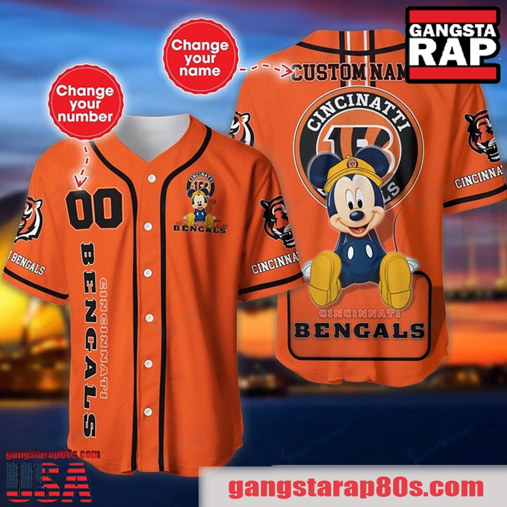 NFL Custom Name Number Disney Mickey Cincinnati Bengals Baseball Jersey Shirt