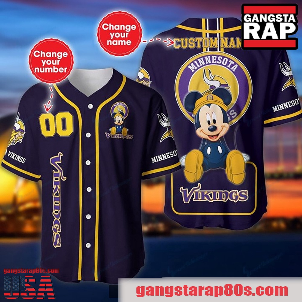 NFL Custom Name Number Disney Mickey Minnesota Vikings Baseball Jersey Shirt