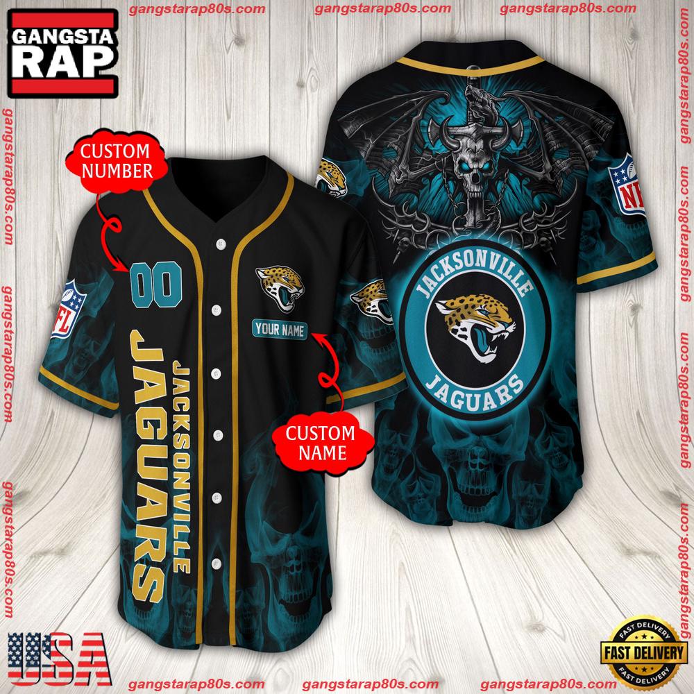 - NFL Custom Name Number Jacksonville Jaguars Skull Death Baseball Jersey Shirt