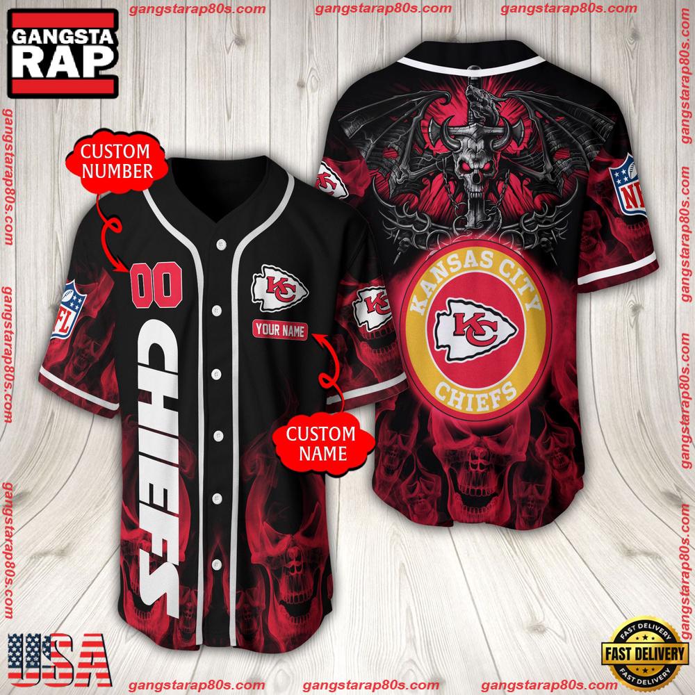 - NFL Custom Name Kansas City Chiefs Football Skull Baseball Jersey Shirt