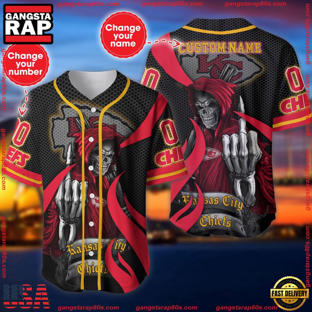 NFL Custom Name Number Kansas City Chiefs Skull Death Baseball Jersey Shirt