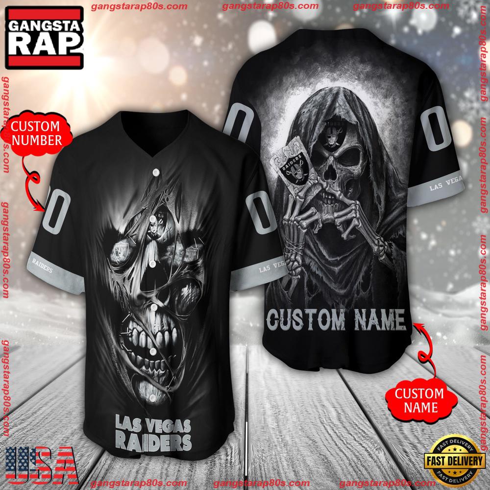 NFL Custom Name Number Las Vegas Raiders Team Skull Death Baseball Jersey Shirt