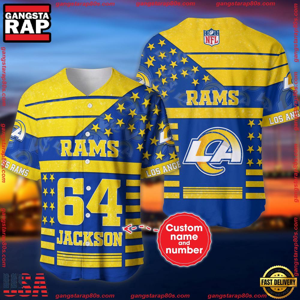 NFL Custom Name Number Los Angeles Rams American Flag New Design Baseball Jersey Shirt