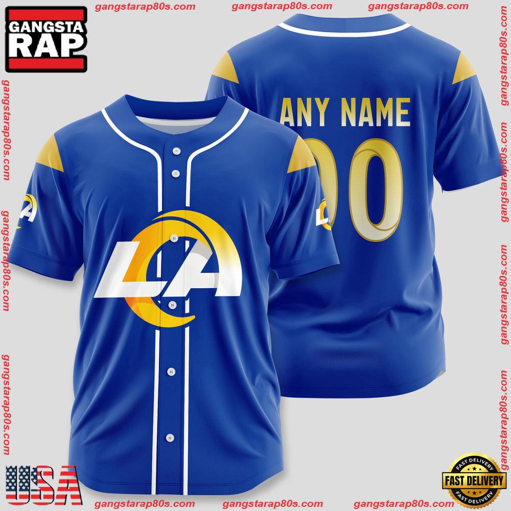 Dive into the thrilling world of NFL fashion with our Custom Name Number Los Angeles Rams Sport Baseball Jersey Shirt. This unique piece seamlessly blends the excitement of the gridiron with the casual flair of baseball attire, making it an essential addition for any dedicated Rams fan in 2023. The shirt offers fans the opportunity to personalize their passion, featuring customizable names and numbers that allow you to display your loyalty with a personal touch.