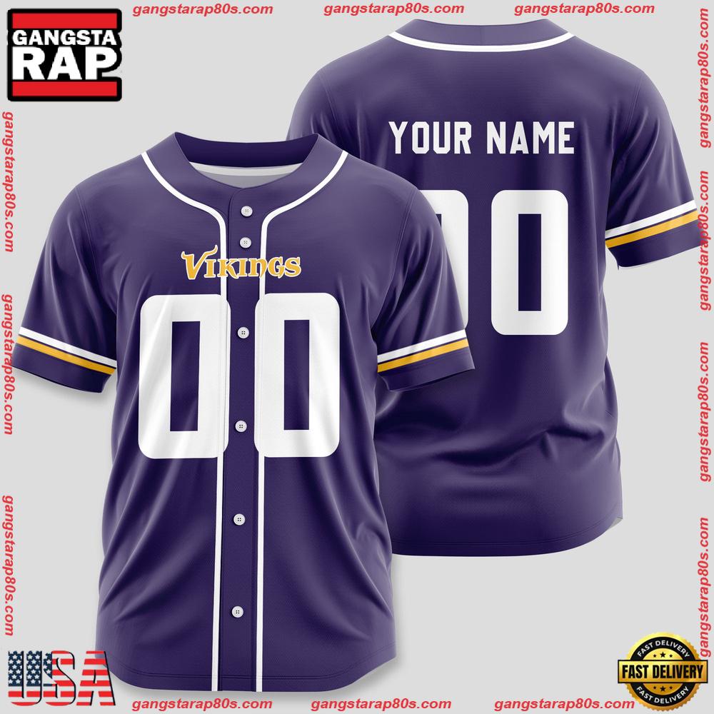 Discover the ultimate fan apparel with our NFL Custom Name Number Minnesota Vikings Team Baseball Jersey Shirt. Whether you’re cheering from the stands or showing support from your couch, this Minnesota Vikings jersey is a must-have for every devoted fan in 2023. Crafted with the highest-quality materials, this jersey ensures comfort and durability, making it perfect for both game days and everyday wear.
