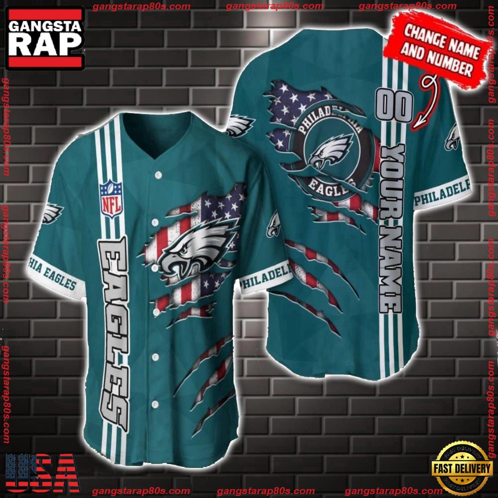 NFL Custom Name Number Philadelphia Eagles America Flag New Design Baseball Jersey Shirt Gift For Fans