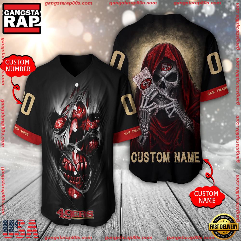 NFL Custom Name Number San Francisco 49ers Team Skull Death Baseball Jersey Shirt