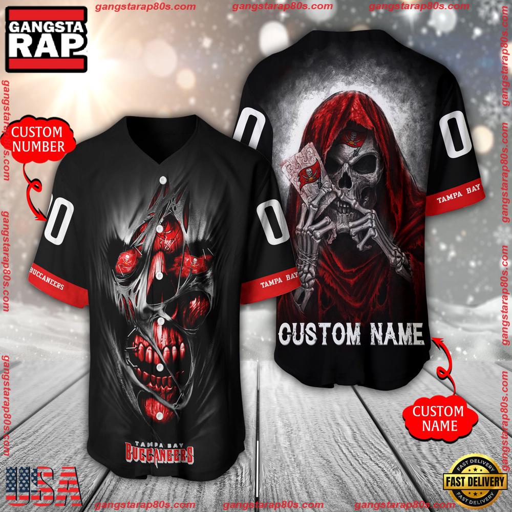 NFL Custom Name Number Tampa Bay Buccaneers Team Skull Death Baseball Jersey Shirt