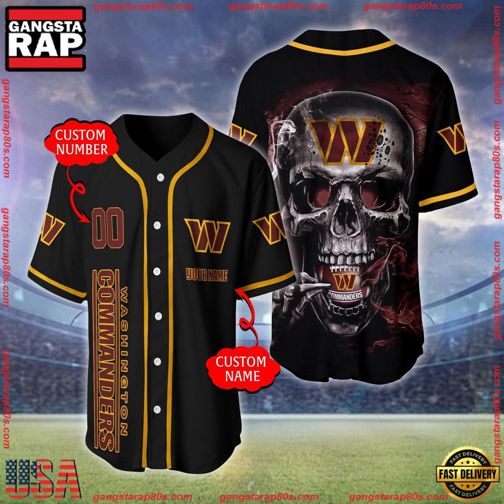 NFL Custom Name Number Washington Commanders Skull Face Baseball Jersey Shirt