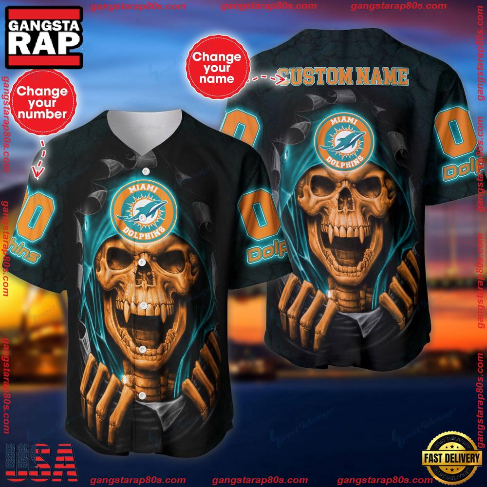 Photos Of NFL Custom Name NumberMiami Dolphins Skull Baseball Jersey Shirt