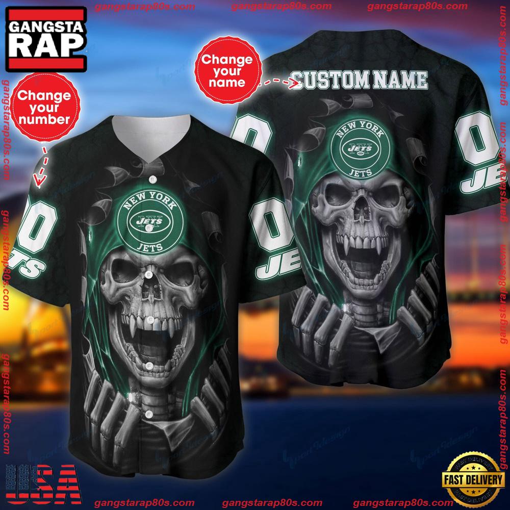 Ultimately, the New York Jets Skull Baseball Jersey Shirt is more than just a piece of clothing; it’s a statement of allegiance and individuality. Stand out from the crowd and take your fandom to the next level with this striking piece. Available now — customize your own and wear your Jets pride with bold confidence.